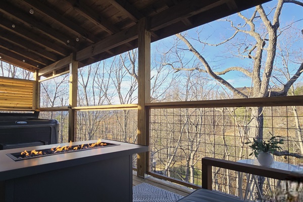 Enjoy a warm soak in the private hot tub while you listen to the breeze move through the trees